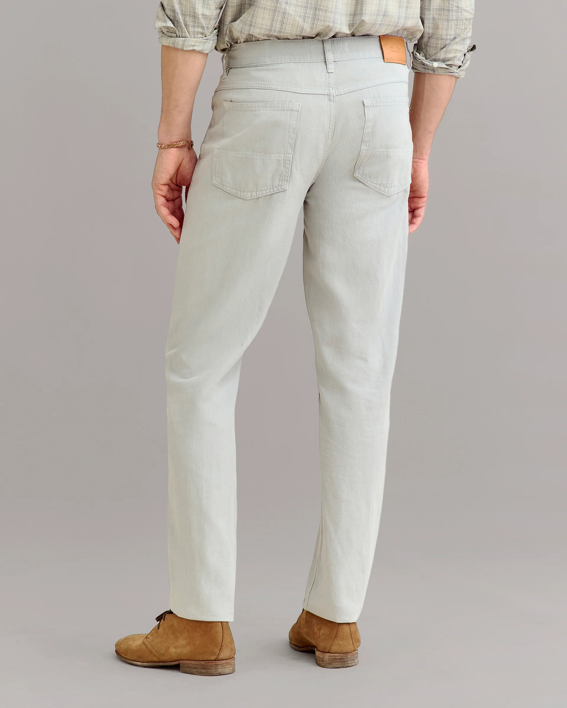 As comfortable as your favorite pair of jeans, these pants are made in a breathable cotton-linen blend with just a hint of stretch for ease of movement and garment-dyed for a lived-in look and feel. Finished with subtle details like an antique brass tack button embossed with our heirloom ribbon stripe and our signature MSL leather patch.
