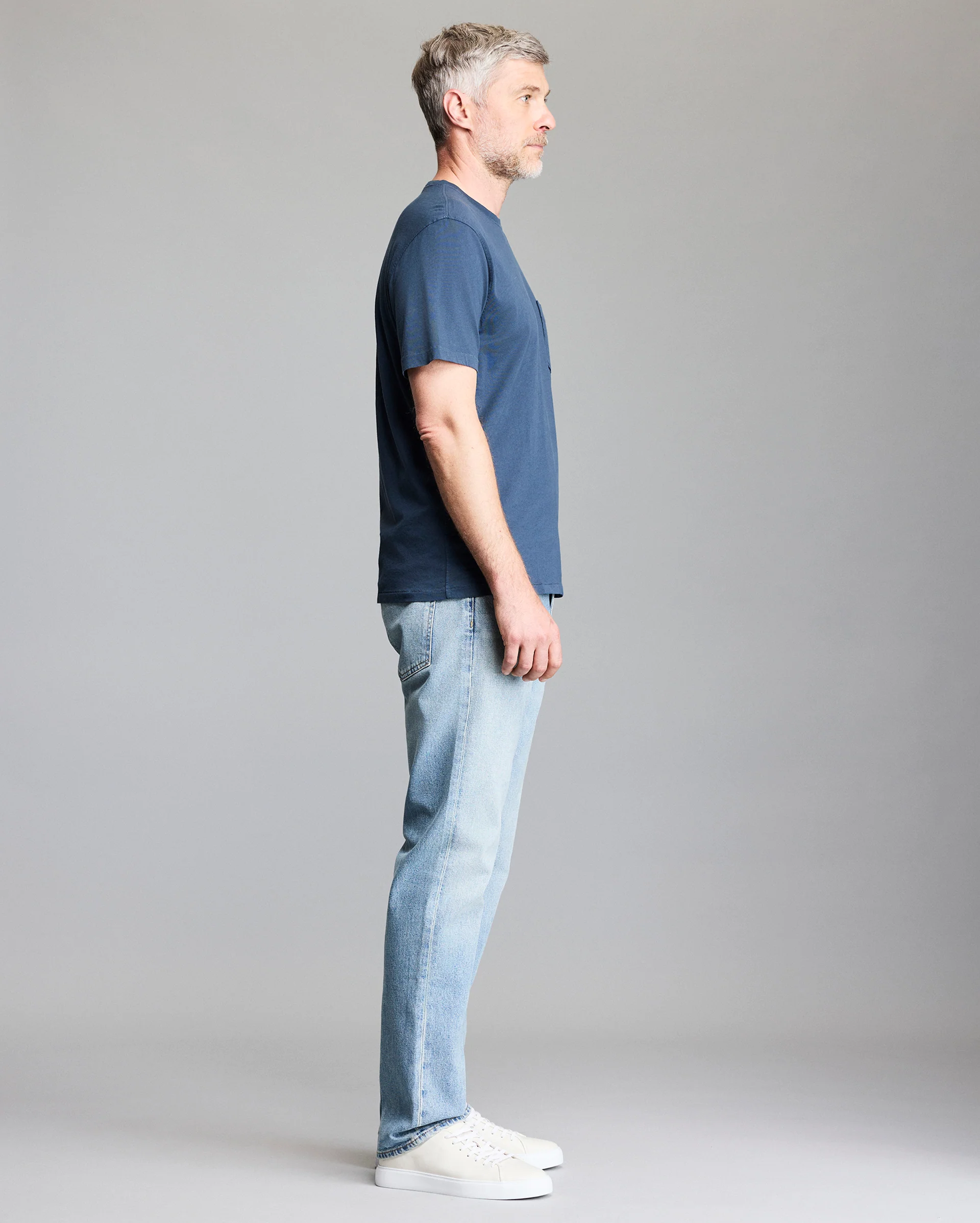 Our lightweight pocket tee is made from ultra-soft organic Pima cotton and garment-dyed for a lived-in look and feel. It's finished with stitch detailing at the chest pocket reminiscent of our signature heirloom ribbon stripe and features cover-stitching throughout for added durability. It's a seasonless wardrobe staple.