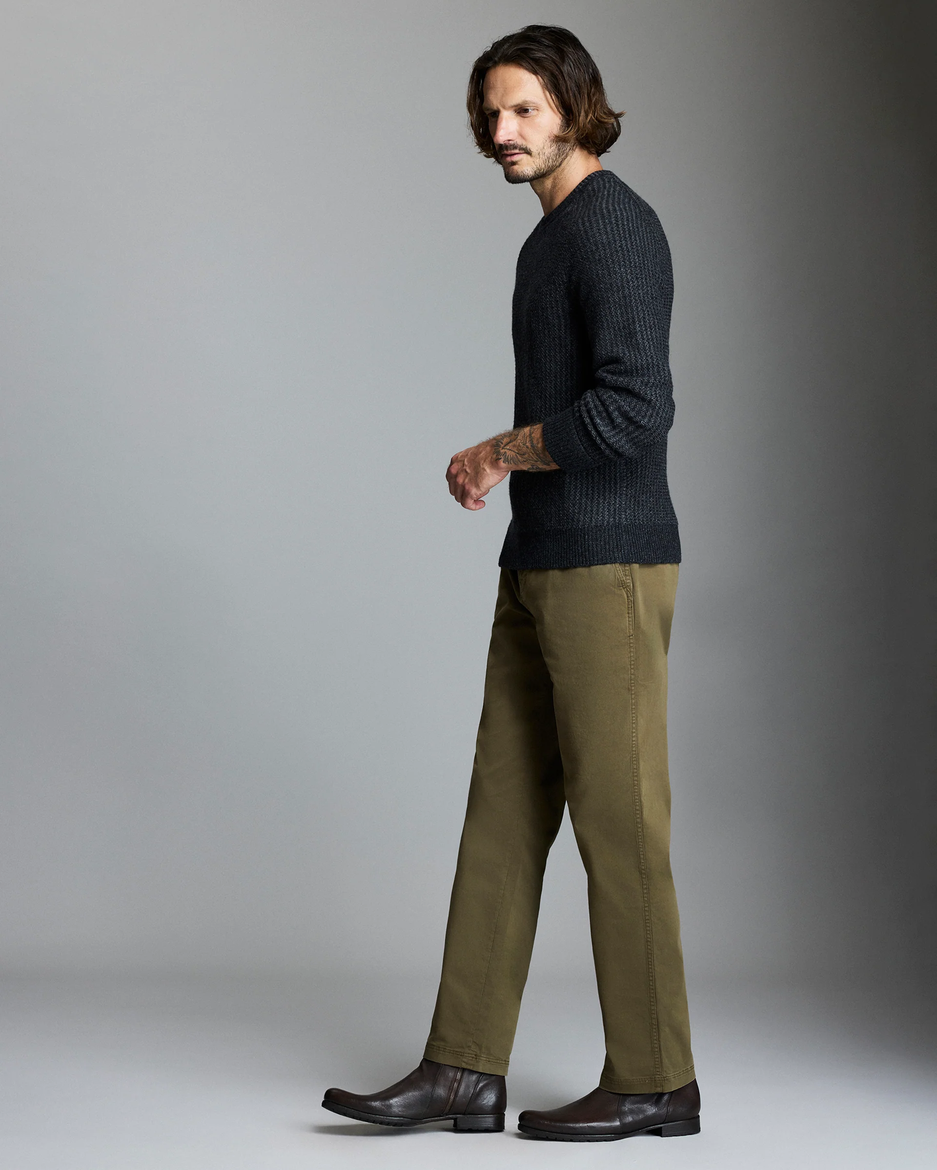 Whether you wear it on its own or under a jacket, a midweight crewneck sweater is a critical layering piece as the seasons change. Ours is crafted from a plaited blend of cotton and merino wool, with ribbed trim at the neck, cuff, and hem, for a luxe spin on the three-season essential.